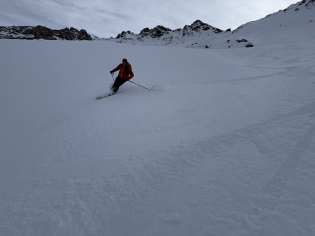 ![]() Die Abfahrt ist herrlich. Rund 20cm Pulverschnee ... |