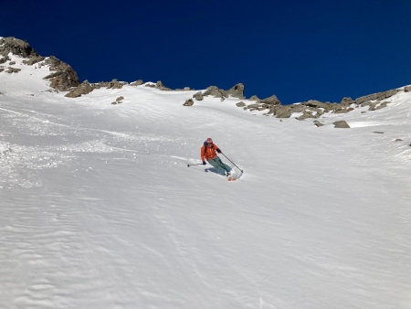 Und auch die Abfahrt ist ob der doch unterdurchschnittlichen Schneemächtigkeit überraschend gut und macht Spaß wie man sehen kann. |