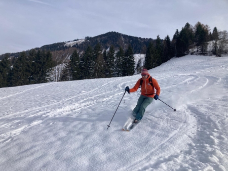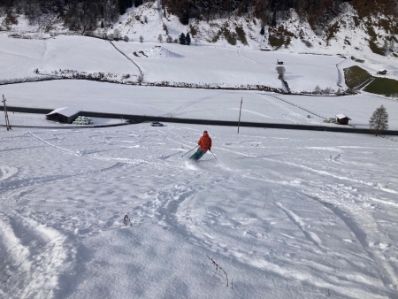 ![]() Die Abfahrt ist herrlich. Rund 20cm Pulverschnee ... |