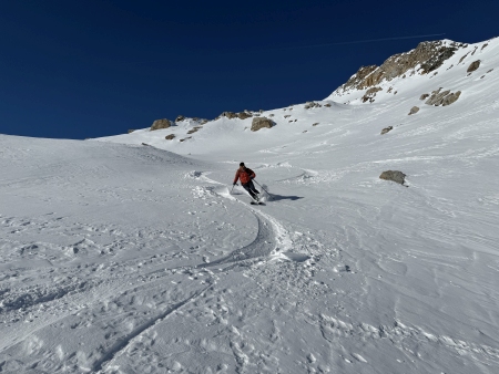 Und auch die Abfahrt ist ob der doch unterdurchschnittlichen Schneemächtigkeit überraschend gut und macht Spaß wie man sehen kann. |