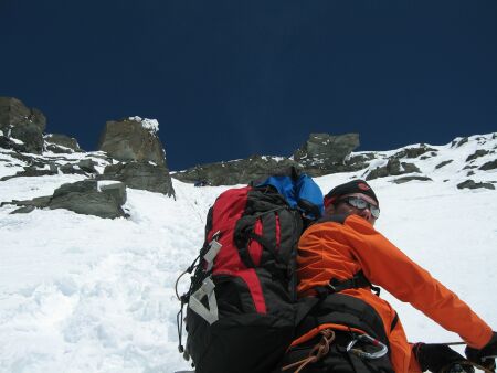 Über die 500 m hohe Südflanke steigen wir bei guten Verhältnissen ... |