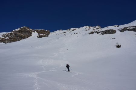 ![]() Der Blick zurück zum Pulver und wir wechseln zu Firn in der Sonnenseite. |