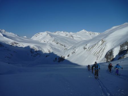 ![]() Zu Fuß per Schi geht es in das Obersulzbachtal auf die Kürsingerhütte am Fuße des Groß Venedigers. |