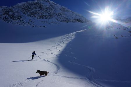 ![]() Wir steigen über den Westgrat auf das Alteck und können bei guten Verhältnissen die steile S-Flanke abfahren. |