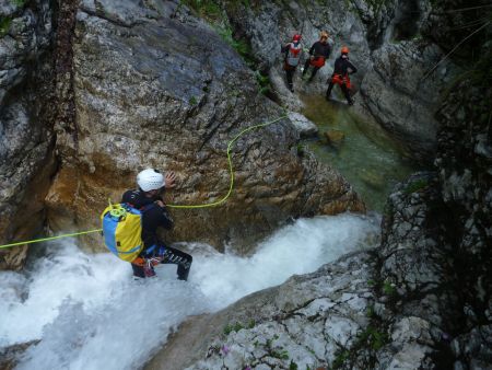 ![]() Landschaftlich einzigartig, der Fischbach im Gollinger Bluntautal. Unterwegs im Rahmen einer Fortbildung, erproben wir Seiltechniken und die Bergung eines Verletzten. |