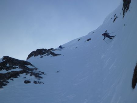 Die Schneelage lässt eine direkte Abfahrt vom Gipfel über die NO- Rinne zu. |