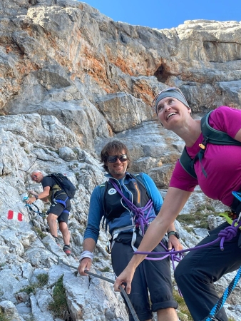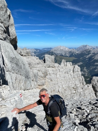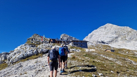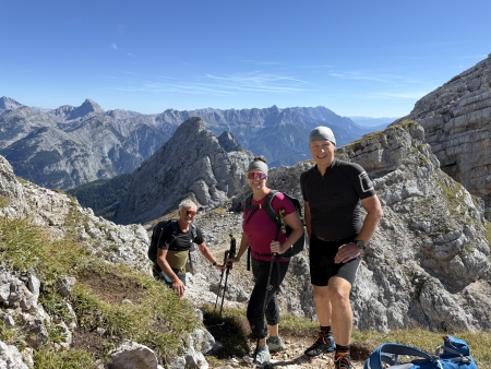 ![]() Über die Kuchlniederscharte und einen kurzen Klettersteig erreichen wir die Passauerhütte, genießen dort noch die gute ... |